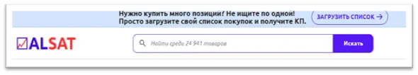•Через email: пользователь может отправить запрос на RFQ@alsat.biz, указав в письме список товаров, количество, требования (бренд, параметры или допустимые аналоги), город и сроки. Платформа сопоставляет запрос с каталогом из более чем 24 000 товарных позиций и возвращает подборку соответствующих запросу товаров с ценами в течение 2 часов (в рабочее время).