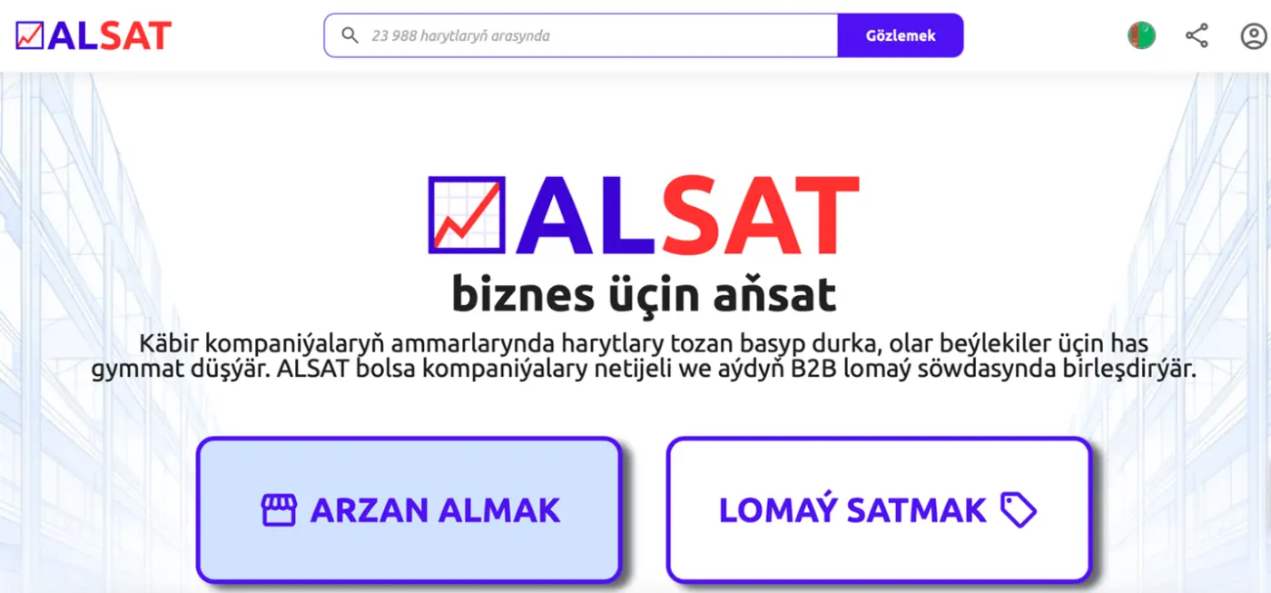 Iş hepdelerinde satyn alma toparlary adatça iki böwet bilen ýüzbe-ýüz bolýarlar: gözleg (gaty köp jaňlar we anyklamalar) we tassyklamalar (bahalar, elýeterlilik, möhletler, resminamalar). 📈 ALSAT.com.tm bu - bir ýerden satyn almak üçin B2B bazary: katalog, kategoriýalar, opsiýalary deňeşdirmek we aýdyň satyn alma prosesi.